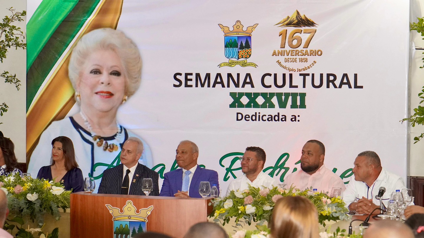 Jarabacoa, RD. – En un solemne y emotivo acto celebrado en la noche de hoy, el Ayuntamiento Municipal de Jarabacoa dejó formalmente inaugurada la XXXVII Semana Cultural, dedicada a la destacada ciudadana Doña Amalia Rodríguez de Fernández, en el marco de la conmemoración del 167 aniversario de vida municipal.