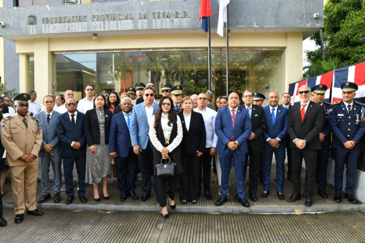 La Vega, RD. – Con la entonación del Himno Nacional a cargo de la Centenaria Banda de Música Municipal, y el izamiento de la Bandera en la explanada frontal de la gobernación provincial,