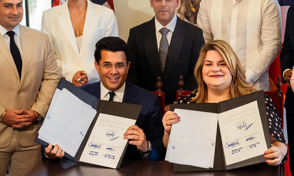 San Juan, Puerto Rico.- Con el compromiso de aportar inicialmente dos millones de dólares para la promoción de los países, el ministro de Turismo de la República Dominicana, David Collado y la gobernadora de Puerto Rico, Jennifer González, firmaron ayer un Memorándum de Entendimiento sobre Cooperación en Materia de Turismo que tiene como fin el multidestino entre ambas naciones caribeñas.